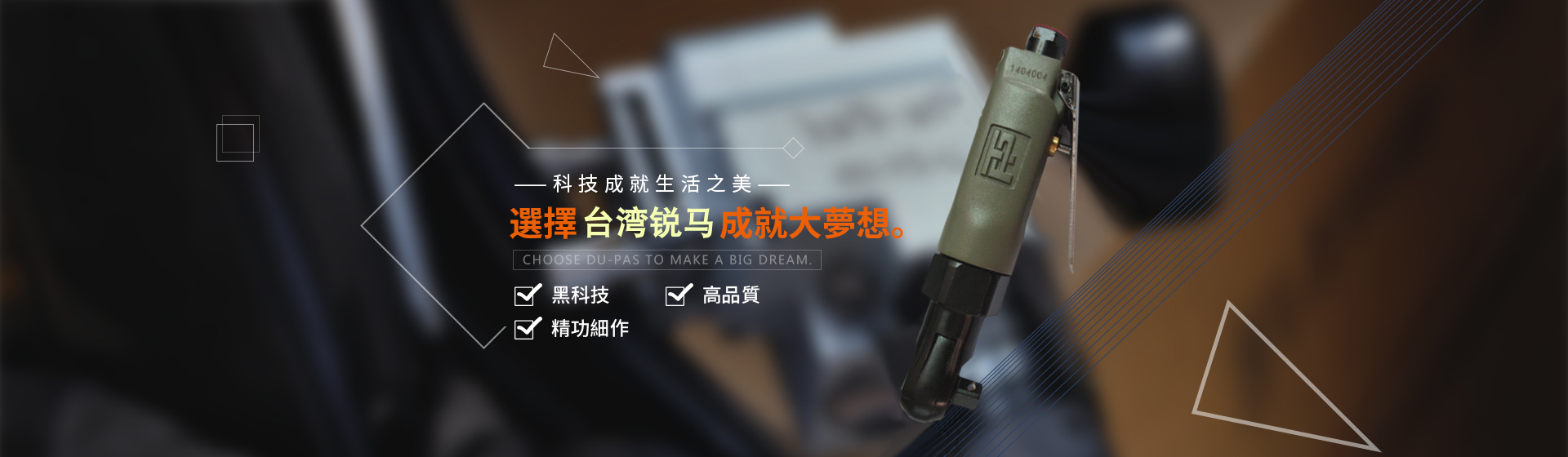 為給廣大客戶提供更加優(yōu)質(zhì)完善的服務(wù),臺灣銳馬氣動工具于2001年進入中國大陸市場,并以100%臺灣原裝進口氣動工具在大陸銷售銳馬、杜派氣動工具以及充電式電動工具。