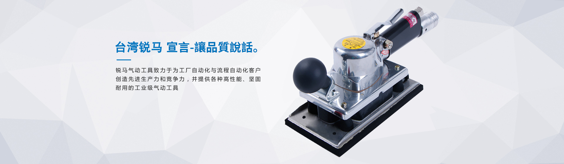 銳馬氣動工具廠家是臺灣專業(yè)制造氣動工具廠"筌誠機械工業(yè)",30多年來致力于氣動/電動工具領(lǐng)域之研發(fā),生產(chǎn)和銷售,努力提升本身產(chǎn)品價值,在臺灣氣動工具制造領(lǐng)域始終處于領(lǐng)先地位,并成功銷往國際市場。